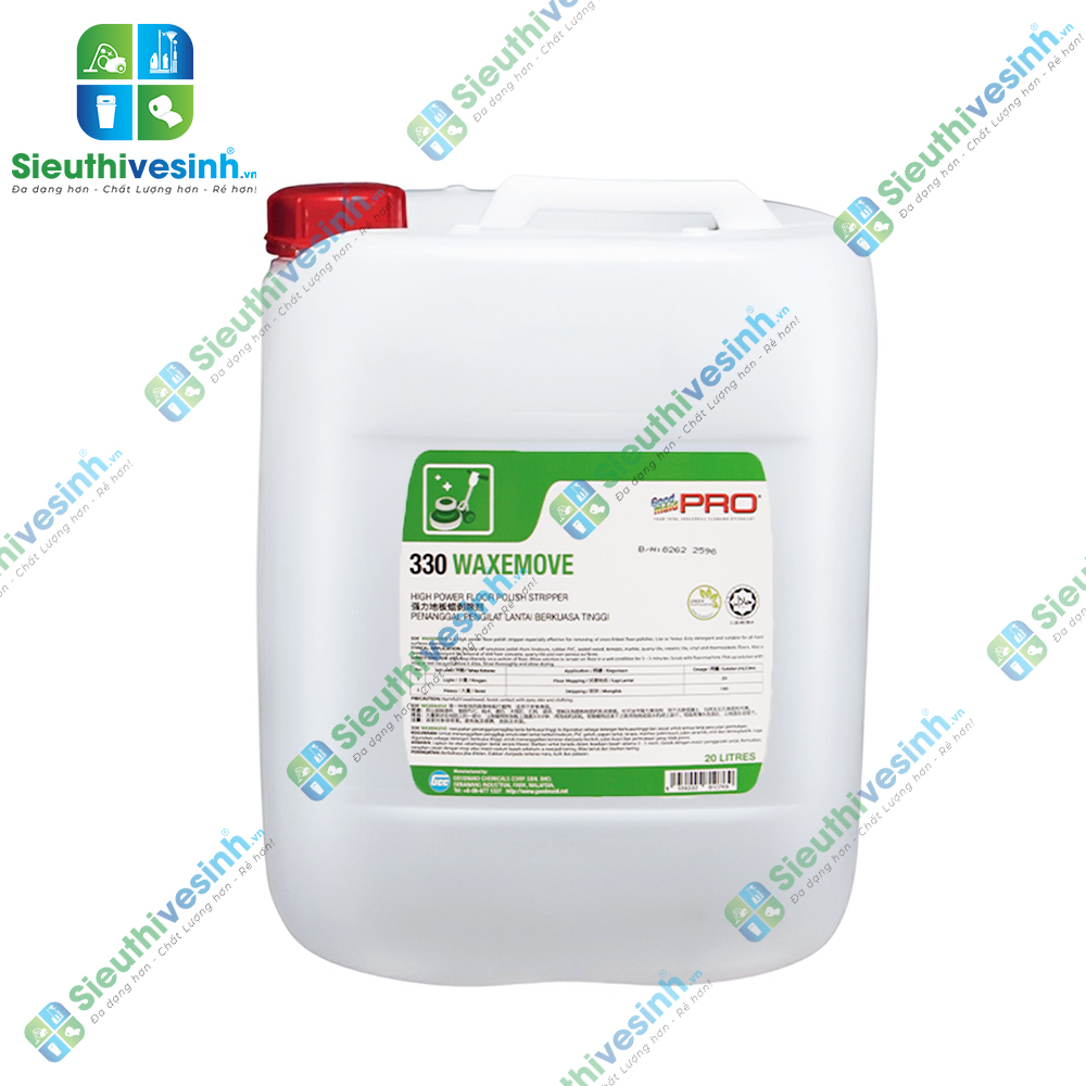 Goodmaid PRO Waxemove 330 – 20L là sản phẩm chuyên dụng giúp sàn nhà sạch bóng, sáng loáng, kéo dài tuổi thọ bề mặt. Với công thức đặc biệt, sản phẩm này nhanh chóng loại bỏ lớp phủ bóng cũ cùng các vết bẩn cứng đầu trên nhiều loại bề mặt như: linoleum, PVC, gỗ, gạch, đá,…  Sản phẩm đặc biệt an toàn khi sử dụng và thân thiện với môi trường.