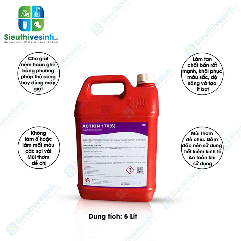 Klenco Action 170s – 5L là một sản phẩm của thương hiệu Klenco, nổi tiếng trong lĩnh vực hóa chất vệ sinh công nghiệp. Sản phẩm này được sản xuất tại Singapore và có nhiều ưu điểm nổi bật như: