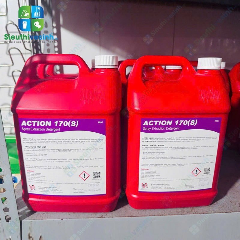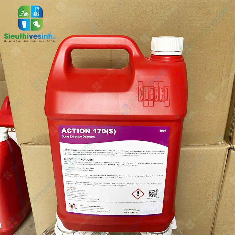 Klenco Action 170s – 5L là hóa chất được dùng để làm sạch sâu các loại thảm, đồng thời giữ màu sắc và độ bền cho sợi vải. Dưới đây là thông tin chi tiết về thành phần hóa chất của sản phẩm: