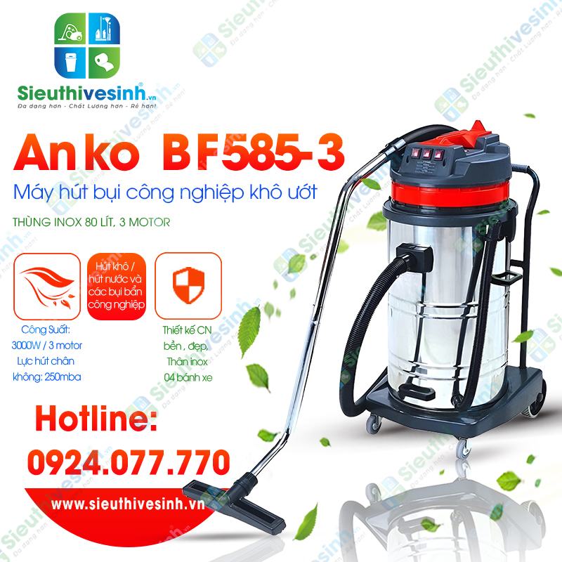 Máy hút bụi khô ướt Anko BF585-3 80lít 3 motor thùng Inox